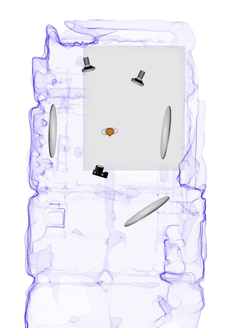 To ensure an efficient shoot, I preplanned the lighting setup with a digital stand-in. To ensure that the setup worked within the greenscreen room, I took a quick scan to use as a blueprint.